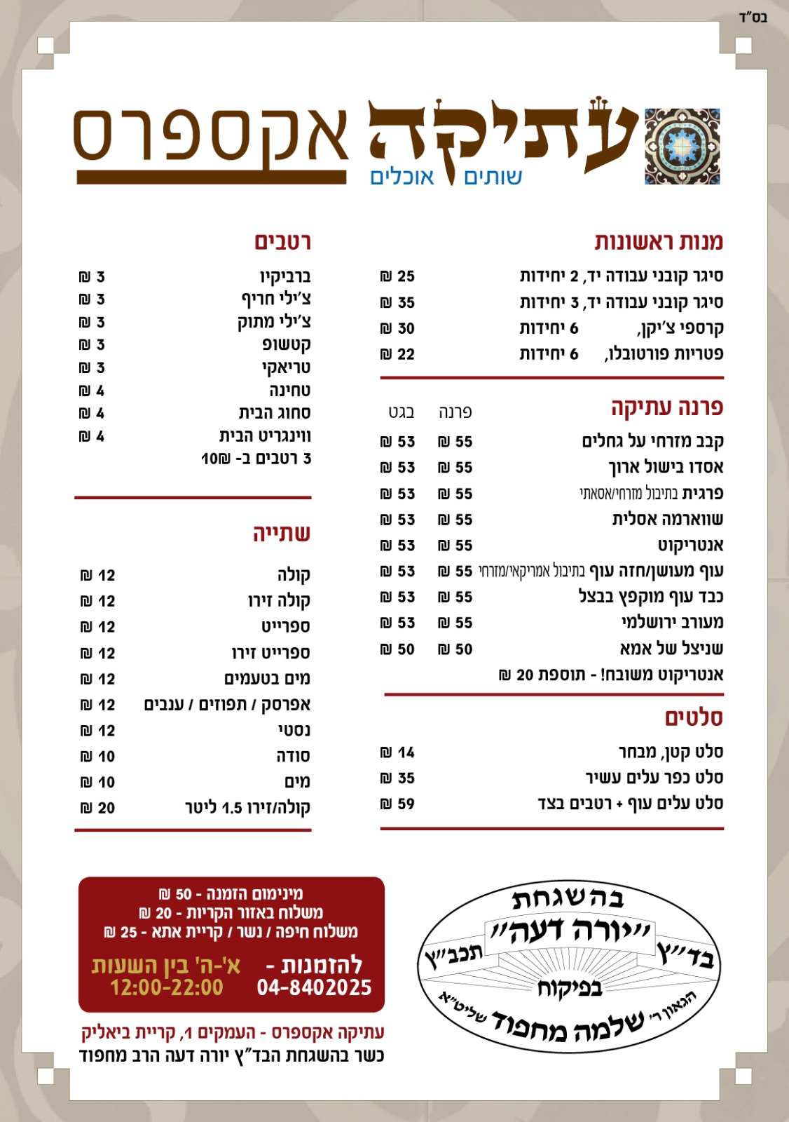 בנוסף מוזמנים ליהנות ממשלוחים טעימים – עתיקה אקספרס בדרך אליכם!